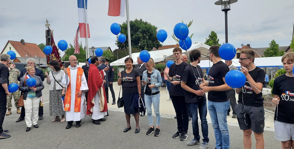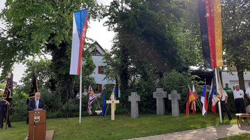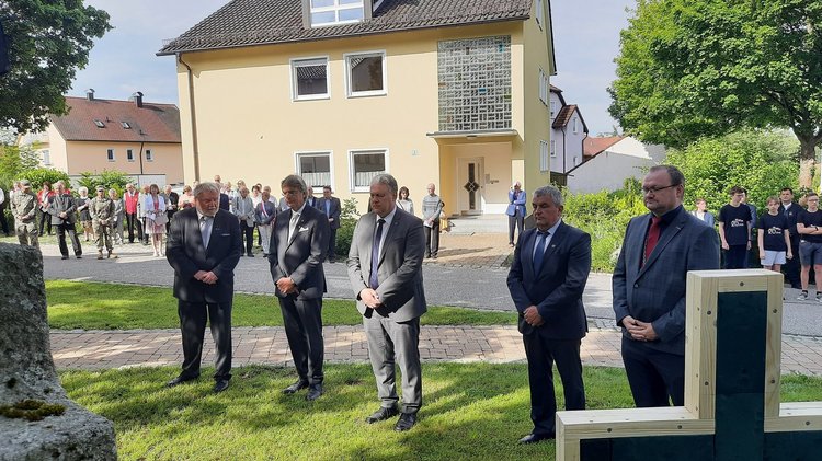 Vor zwanzig Jahren wurde das Europäische Jugendprojekt Oberpfalz (EJPO) in Freihung auf der Grundlage der Jugendarbeit des Volksbundes Deutsche Kriegsgräberfürsorge e. V. begründet. Entsprechend war der Volksbund Deutsche Kriegsgräberfürsorge, hier speziell der Bezirksverband Oberpfalz, auch der Basis- und Gründungspartner des EJPO. Der jeweilige Bezirksverbandsvorsitzende, damals Regierungspräsident Wilhelm Weidinger, ist seitdem immer Schirmherr für das EJPO. Für das Jubiläumsfest, das an Pfingstsonntag in Freihung zum Anlass des 20-jährigen Bestehens des EJPO stattfand, hat Landrat Richard Reisinger, der zugleich auch der Vizepräsident des Volksbundes ist, die Schirmherrschaft übernommen. Zu dem festlichen Ereignis, welches unter den Vorzeichen des aktuellen Krieges in der Ukraine stand, wurden zahlreiche Ehrengäste geladen, darunter die Bürgermeisterin aus Diemeringen (Elsaß), Nicole Oury, Marta Hebda aus Krakau (Polen), sowie der Bürgermeister aus Plasy (Tschechien), Zdenek Hanzlíček. Ebenfalls geladen waren für den Bezirksverband Oberpfalz der nunmehr ehemalige Regierungspräsident und derzeitige Bezirksvorsitzende Axel Bartelt, Abteilungsdirektor a. D. Richard Glombitza sowie der Bezirksgeschäftsführer Dr. Dario Vidojković. Zu den Feierlichkeiten waren dann auch rechtzeitig die an der diesjährigen Projektwoche des EJPO aktuell teilnehmenden Jugendlichen aus Frankreich, Tschechien, Polen und aus der Oberpfalz, gemeinsam mit ihren Projektleitern Christiane Regn sowie Gerd Müller, aufgeschlossen.