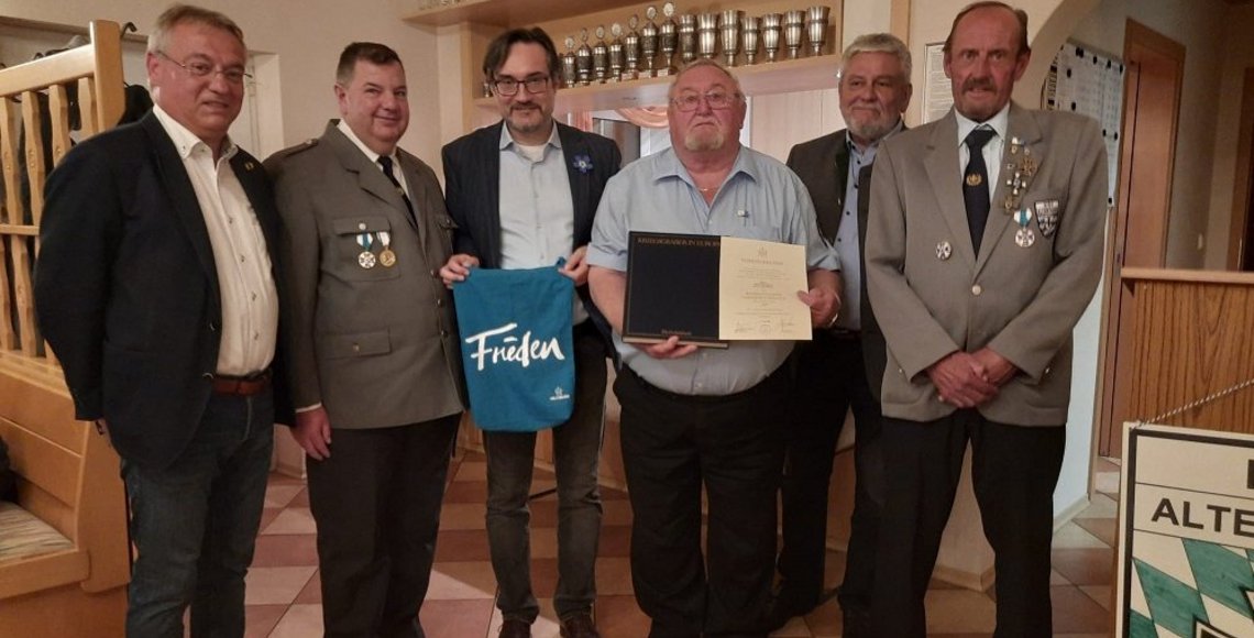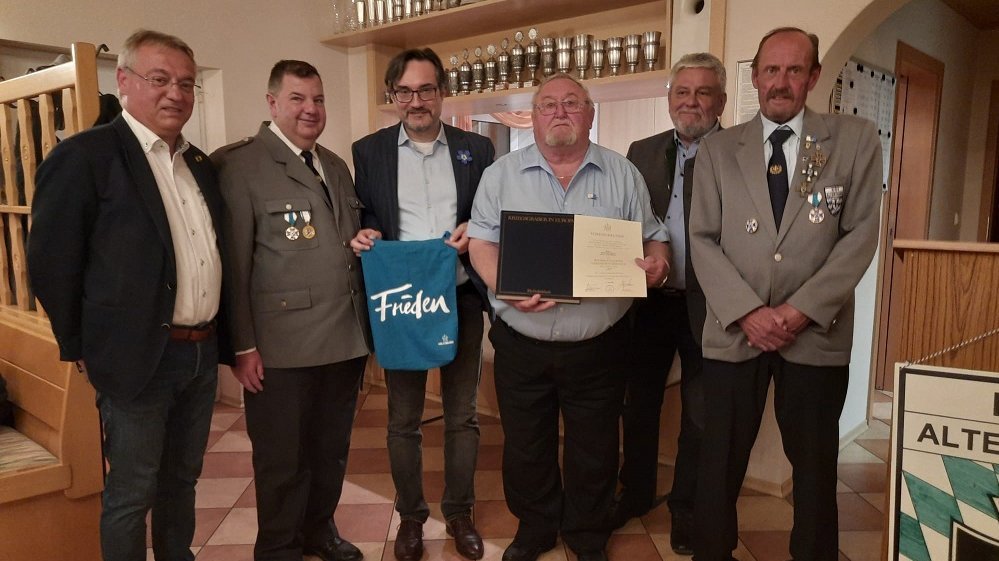 Die jüngst abgehaltene Jahreshauptversammlung des Krieger- und Reservistenvereins (KRV) Altenthann e. V. (Landkreis Regensburg) hatte noch einen besonderen Höhepunkt aufzuweisen, als es zu den Ehrungen und Auszeichnungen ging. Dazu geladen hatte der 1. Vorsitzende Willibald Nichtl. Als Ehrengäste eingeladen wurden der Vorsitzende des Kreisverbands Donaugau-Regensburg des Bayerischen Soldatenbunds 1874 e. V. (BSB 1874 e. V.), Markus Stöckl, der Kreisehrenvorsitzende Alois Lorenz sowie der Bezirksgeschäftsführer des Bezirksverbandes Oberpfalz im Volksbund Deutsche Kriegsgräberfürsorge, Dr. Dario Vidojković. Als 2. Vorstand war auch der 1. Bürgermeister der Gemeinde Altenthann, Harald Herrmann, anwesend.